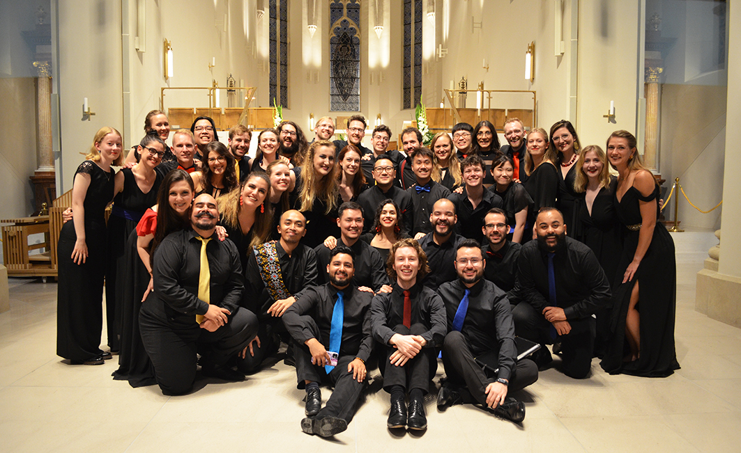 World Youth Choir celebrating its 30th Anniversary at the Palacete dos Condes de Monte Real, Lisbon, Portugal, in 2019, during the World Choral EXPO